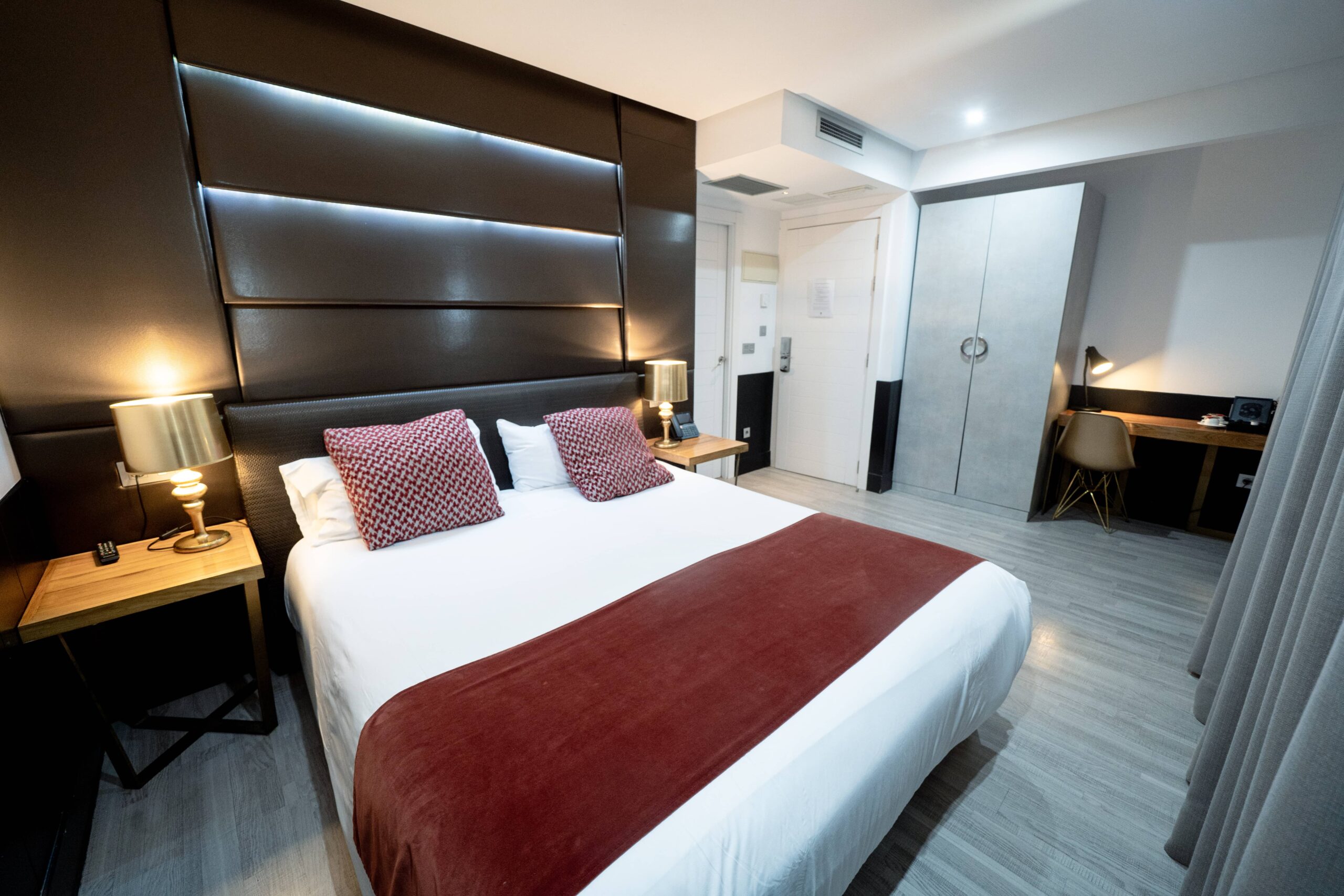 La habitación doble confort con vistas a la bahía y terraza está compuesta por una cama de matrimonio y un colchón de la marca King Koil. Cuarto de baño completo: ducha efecto lluvia, secador, planchas de pelo, toiletries,… Televisión de 52 pulgadas, teléfono, caja fuerte, servicio despertador, Wi-Fi de alta velocidad, aire acondicionado y calefacción.