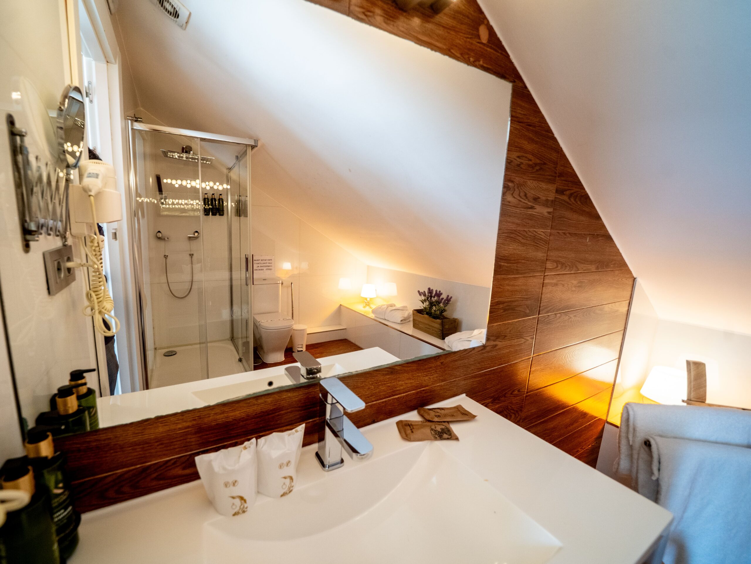 Cuarto de baño completo: ducha efecto lluvia, secador, planchas de pelo, toiletries,…